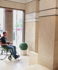 La silla de ruedas Line Giro es una silla diseñada para evitar problemas de accesibilidad gracias a su innovador sistema de ruedas traseras giratorias que permiten el acceso y las maniobras en espacios pequeños. Con un simple movimiento, el pasajero puede abrir las ruedas del Giro y ganar espacio y maniobrabilidad para atravesar puertas, ascensores, baños, etc.