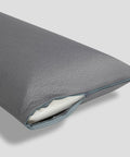 La funda de la almohada está confeccionada en poliéster, lo cual le proporciona un acabado suave y resistente, la hace eficiente contra la suciedad y las manchas, y evita que encoja al lavarla. El color gris de su funda es ideal para evitar las clásicas manchas amarillas. Su tejido Strech aporta una gran transpirabilidad, permitiendo que el núcleo pueda respirar.