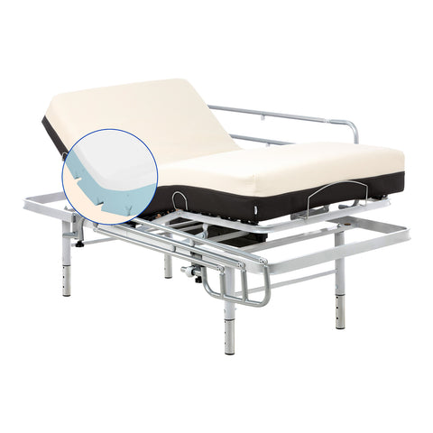 - Orthopädisches Set V6: Die Komplettlösung für die häusliche Pflege. Dieses Set kombiniert ein elektrisch verstellbares Pflegebett und eine Viscoelastik-Matratze mit Baumwollbezug, die Komfort, Atmungsaktivität, Hygiene und Sicherheit für den täglichen Schlaf älterer oder mobilitätseingeschränkter Personen bietet.
