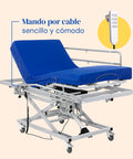 Cuida sin castigar tu espalda. Eleva la cama articulada con carro elevador hasta los 82,5 cm para asistir a la altura de tu cintura, evitando posturas forzadas. El nivel mínimo de 39 cm asegura transferencias laterales más livianas y seguras para ambos.