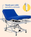 Cuida sin castigar tu espalda. Eleva la cama articulada con carro elevador hasta los 82,5 cm para asistir a la altura de tu cintura, evitando posturas forzadas. El nivel mínimo de 39 cm asegura transferencias laterales más livianas y seguras para ambos.