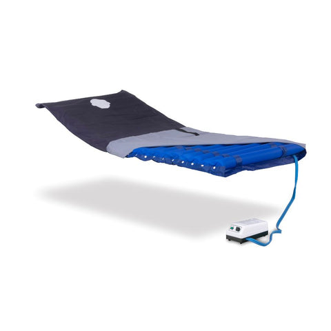 - Für die häusliche Therapie entwickelt, werden die Zellen der Anti-Dekubitus-Matratze zur Behandlung von Druckgeschwüren zweiten Grades mit Luft gefüllt und entleert, wodurch eine Bewegung entsteht, die die Durchblutung in den Druckstellen bettlägeriger Patienten verbessert. Der wechselnde Druck sorgt für eine überlegene therapeutische Behandlung.
